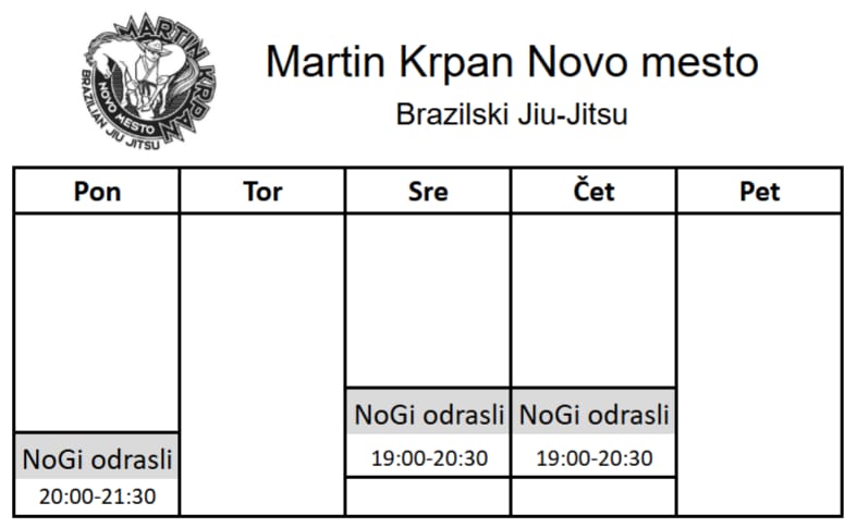 BJJ NoGi osnove: začetniška skupina za odrasle.